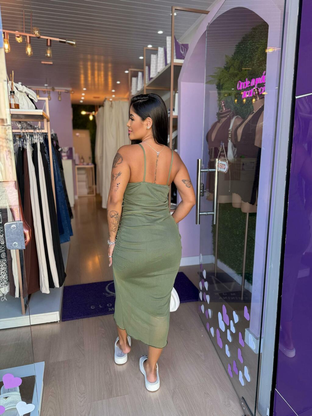 Esse modelo tem um caimento perfeito e é todo drapeado nas laterais, o que valoriza ainda mais as curvas e traz um visual sofisticado e atual.